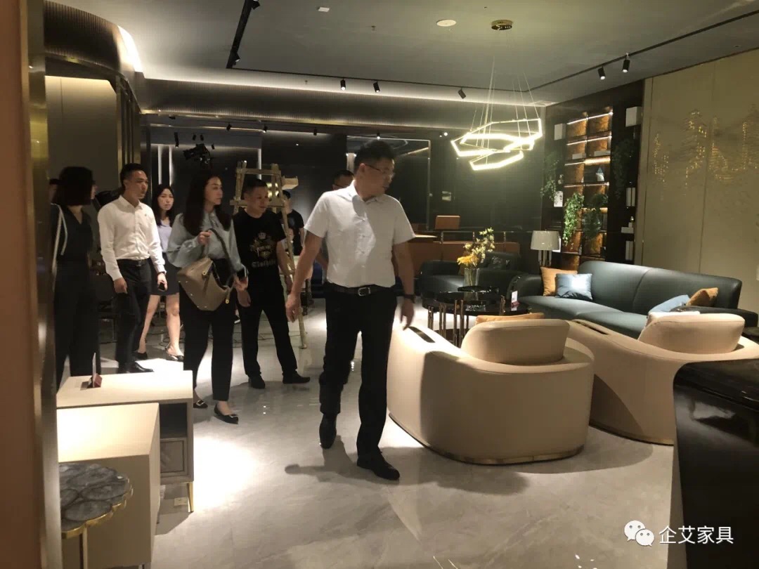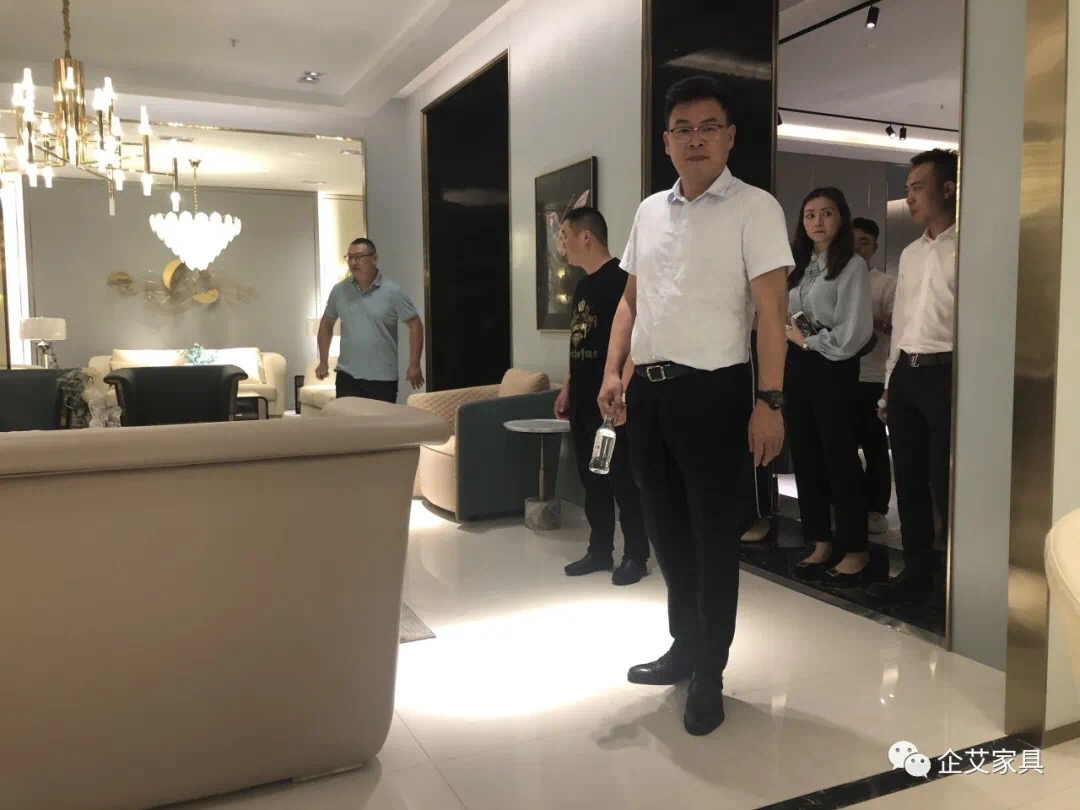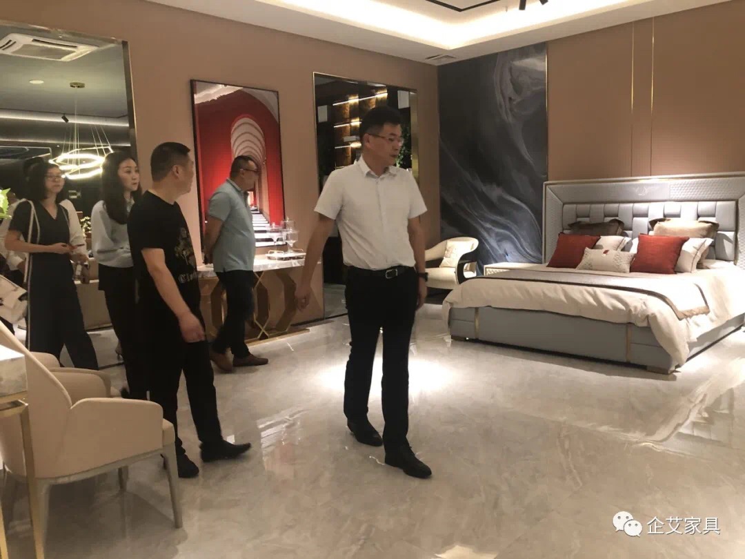 刘克政总经理一行领导,先是参观了企艾家具展厅。何一波董事长及刘友德总经理讲解介绍企艾家具的产品,刘克政总经理对我们产品的品质和做工给予高度的肯定与赞赏。